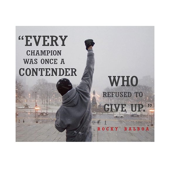 Rocky Balboa-Every Champion-Contender Who Refused to Give Up-Motivational Quotes Wall Art -10 x 8 Photo Wall Print-Ready to Frame. To Adrian I wanna kiss ya. Take a look at the few most memorable quotes from the movie Rocky.